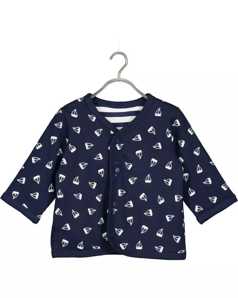 Roztomilá mikinka BLUE SEVEN pro kluky, potisk lodiček,podšitá modrobílou pruhovanou látkou.