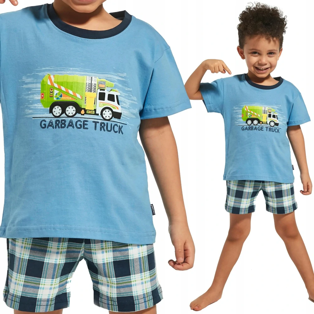 Pohodlné chlapecké pyžamo s oblíbeným obrázkem popelářského vozu je perfektní volbou pro malé kluky. Modré tričko s krátkým rukávem s potiskem vám zpříjemní usínání. Kostkované kraťasy dodávají celému vzhledu charakter. Pyžamo vyrobené z vysoce kvalitní bavlny je měkké, vzdušné a jemné k pokožce, což zaručuje pohodlí po celou noc.