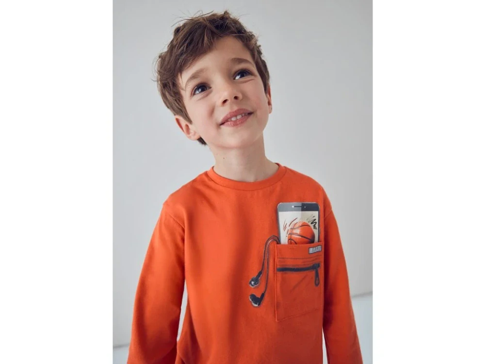 - Chlapecké triko dlouhý rukáv Mayoral s telefonem s kapse 4078-88 oranžové velikost 122