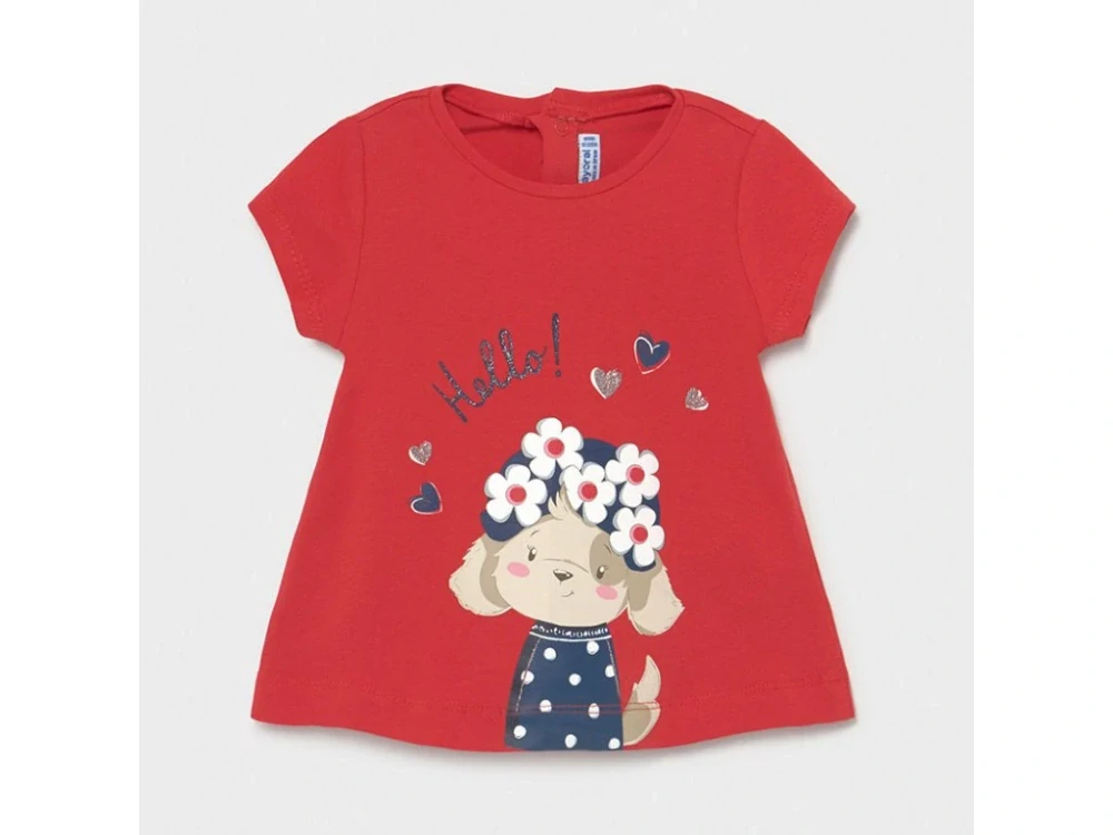 Dívčí tričko krátký rukáv s obrázkem Pejska mayoral 1088-56 Červené