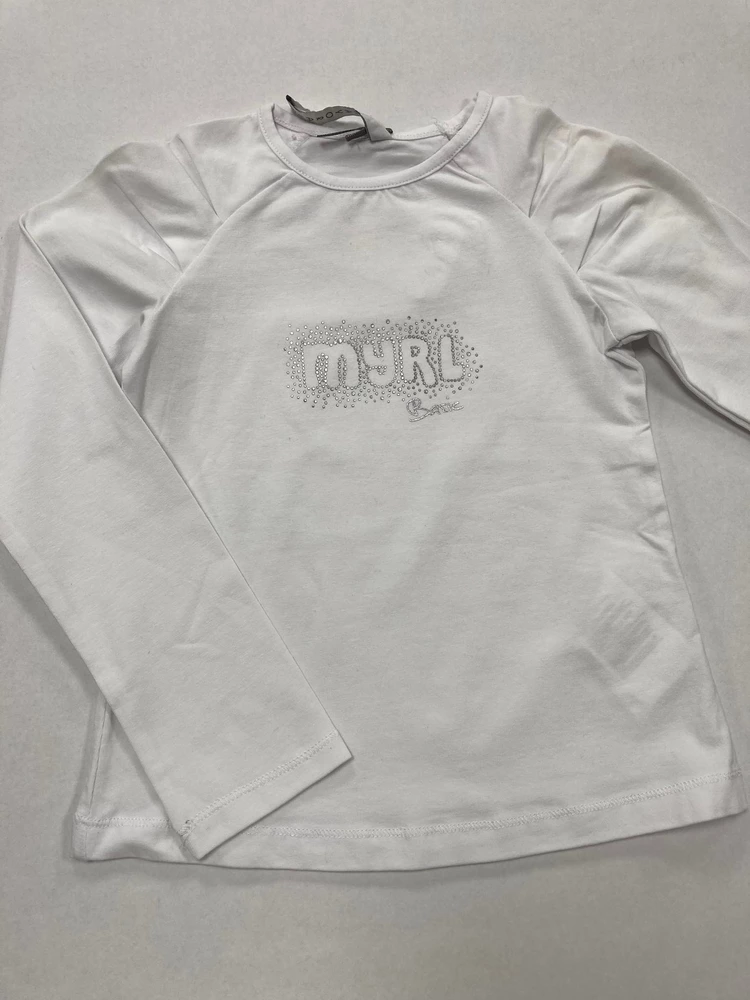 Dívčí triko s dlouhým rukávem od firmy Mayoral, se stříbrnou aplikací na předním díle, nápisem "myrl".