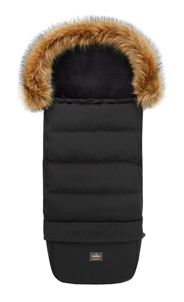 Fusak je ušit z funkčního voděodolného softshellu. Je ozdoben kvalitní nadýchanou kožešinou nově v té nejvyšší kvalitě, kterou je možné odepnout (k fusaku je připevněna pomocí druků).