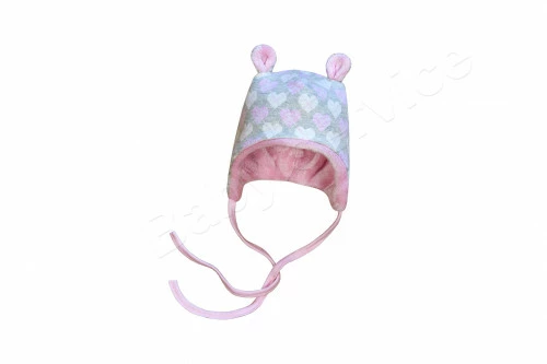 - Kojenecká podšitá zavazovací čepička s oušky wellsoft Srdíčka Baby Service