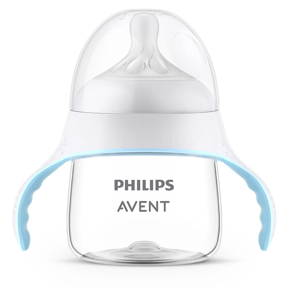 Lahvička na učení Natural naučí dítě pít z hrnečku. Pohodlné držadla pomáhají dítěti samostatně držet lahvičku, zatímco pije ze známého dudlíku.
