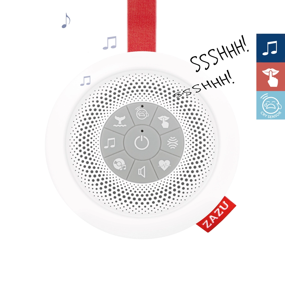 - Přehrává 6 melodií: Ššš...Ššš..., zvuk tlukotu srdce, bílý šum, zvuk oceánu, uklidňující hudbu a ukolébavky.