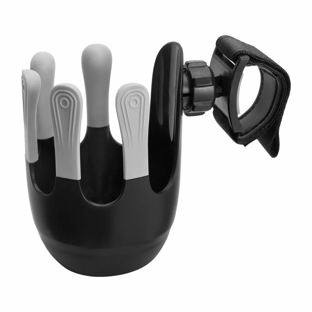 Flexibilní držák nápojů je navržený tak, aby se do něj vešly dětské láhve, kelímky s kávou i větší láhev s vodou až do průměru 8,5 cm. Systém s 360° rotací lze díky jednoduché instalaci pomocí suchého zipu připevnit na rukojeť téměř jakéhokoliv kočárku. Unikátní, moderně vypadající pětiprstý systém zajišťuje lepší stabilitu kelímku nebo láhve, zabraňuje tak nechtěnému vylití nápoje.